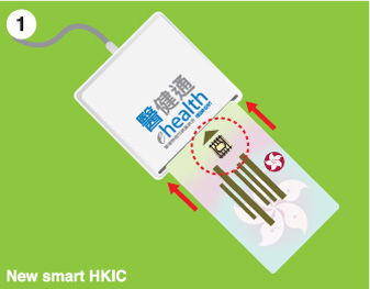 | Check the version of the smart HKIC of the patient and insert card into the card reader with chip facing up. |