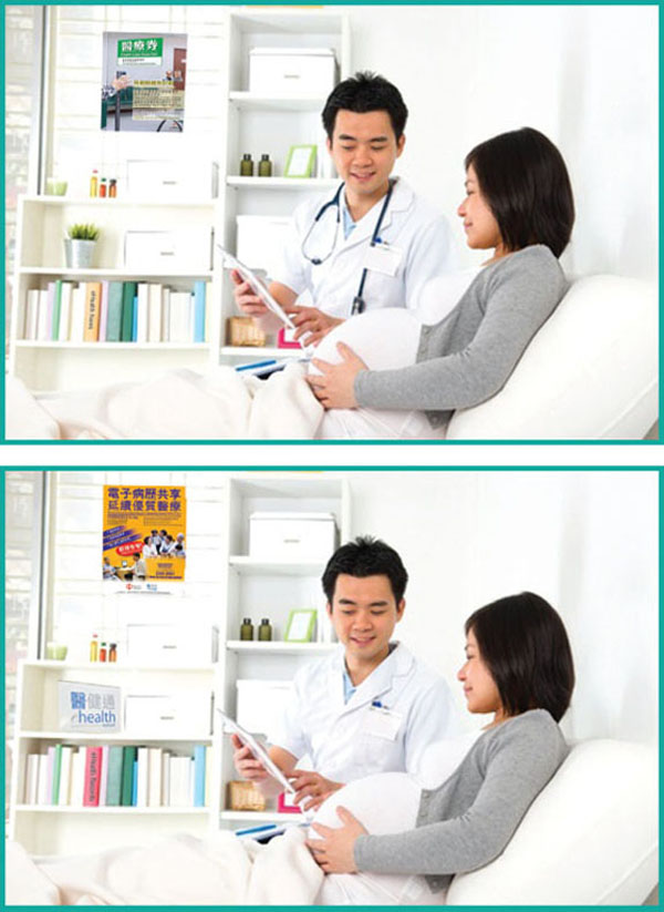 接受「齐来找不同」的挑战,考考您的眼力,测试您对电子健康纪录的认识。以下两幅图片中有四个不同之处,请圈出其中两个。成功圈出两个不同之处的读者便可赢取奖品乙份,送完即止。